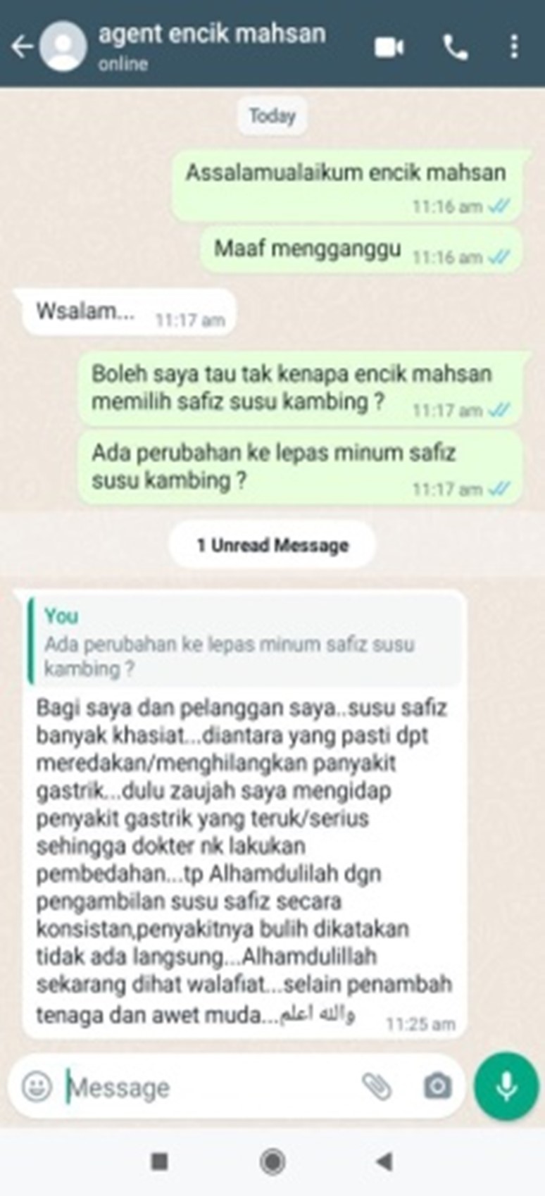 Formula Safiz Susu Kambing Kolostrum adalah satu-satunya produk di Malaysia yang menggunakan konsep campuran antara susu kambing dengan susu kolostrum. Selain daripada itu, Safiz Susu Kambing Kolostrum juga mempunyai 6 campuran makanan sunnah iaitu badam, delima, kurma, madu, kismis dan buah tin yang mana kita tahu keenam-enam makanan sunnah ni bagus untuk kesihatan kita dan mampu melengkapkan nutrisi diet pemakanan harian.